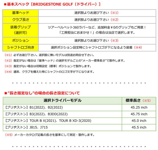 (例:ドライバー用で長さが40.0inchに指定されている、など)