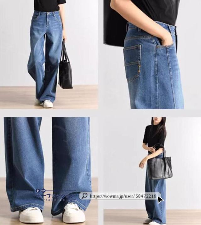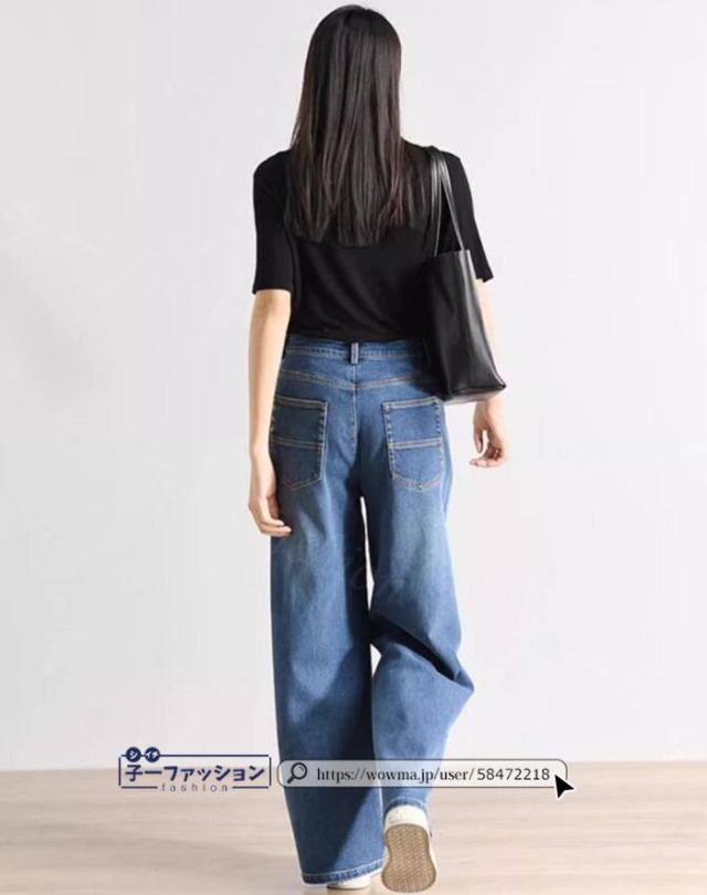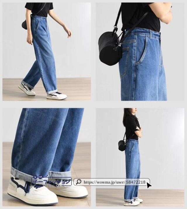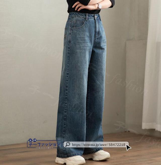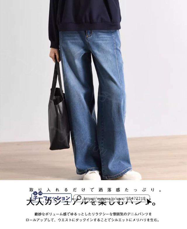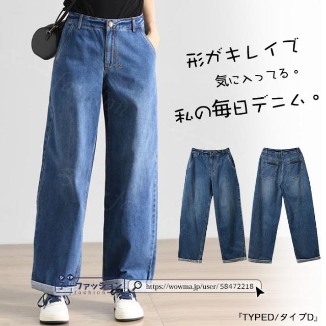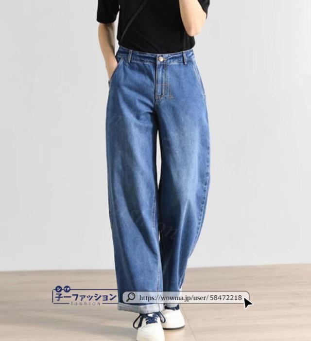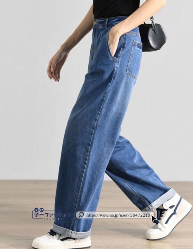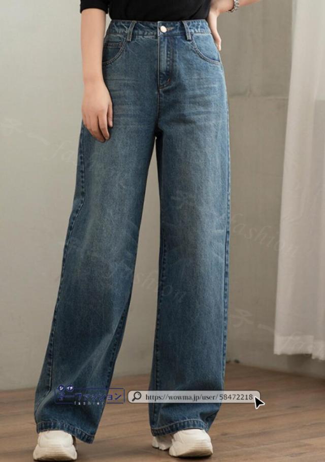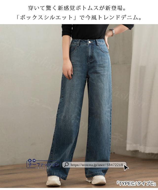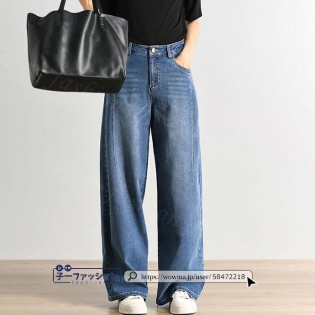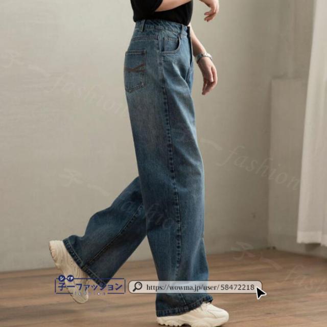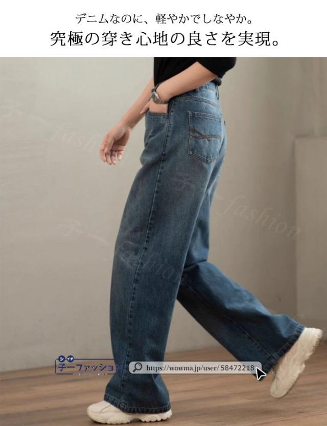 デニムパンツ ワイドパンツ ストレート ボトムス レディース ワイドデニム パンツ ジーンズ ジーパン デニム ハイウエスト コットン 綿 大きいサイズ ゆったり ストリート かわいい 大人 カジュアル 着痩せ 秋冬