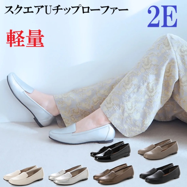 モカシン ローファー スクエアUチップローファー ローヒール 2e カジュアル 合わせやすい ビジネス デイリー シンプル 大きいサイズ 小さいサイズ レディース靴 おしゃれ 上品 合成皮革