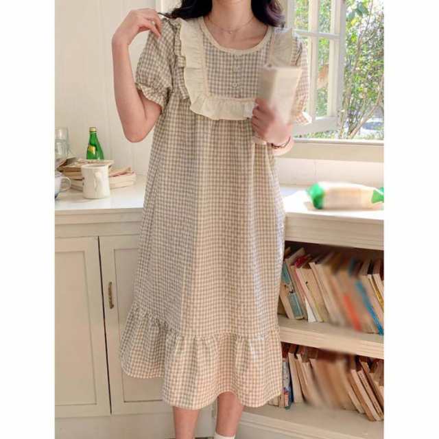 男女セット ペア パジャマ ペアルック 春 夏 綿 ルームウェア 半袖 パジャマ ルームワンピース カジュアル カップル お揃い チェック柄 レディース フリル ネグリジェ メンズ パジャマセット 結婚祝い ギフト プレゼント JITIFA