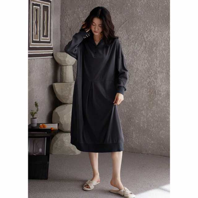 パジャマ ネグリジェ レディース Vネック ルームウェア 長袖 綿 部屋着 ワンピース ルームワンピース 肌に優しい ミモレ丈 透けない 体型カバー ゆったり マタニティウエア お寝巻き おねまき シンプル 春秋 柔らか プレゼント JITIFA