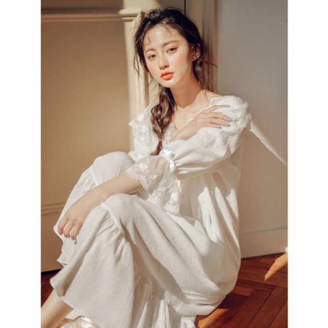 ネグリジェ パジャマ レディース パジャマ 大きいサイズ ワンピース ルームウェア 長袖 姫系 可愛い レディース 部屋着 ワンピース ロング丈 寝巻き 寝間着 春夏秋冬 パジャマ レディース 綿 無地 ナイティ ルームウェア マキシ丈ワンピ レース JITIFA