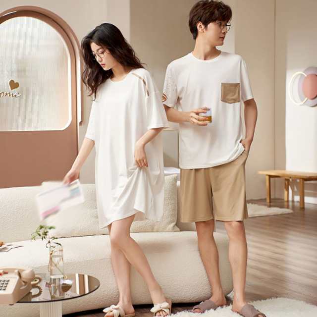 ルームウェア ペア パジャマ上下セット 男女 パジャマ 部屋着 ネグリジェ 春夏 かわいい カップル ペア ルームウェア セットアップ 寝間着 ナイトウェア リラックスウェア 可愛い プレゼント 半袖 お揃い ペア JITIFA