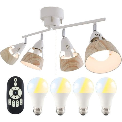 共同照明 シーリングライト 4灯 調光 調色 LED電球60W形付き リモコン操作 ナチュラル GT-DJ-4QW-9WT-2 シーリングスポットライト E26 角度調節可 折り畳み 木目調 北欧 リビング照明 天井照明 おしゃれ 居間用 ダイニング照明 食卓用