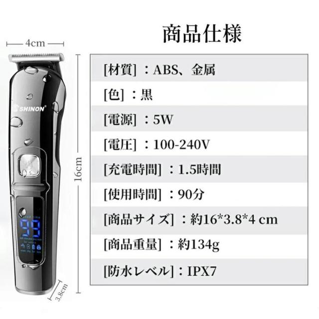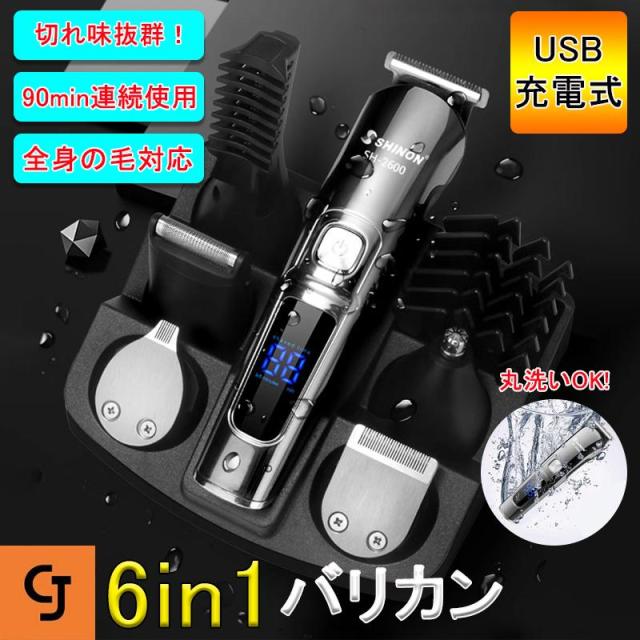 バリカン 散髪 子供 バリカン 電動 ヘアーカッター 業務用 6in1 電動バリカン 多機能 IPX7防水 水洗い 散髪用 充電式 家庭用 鼻毛カッター