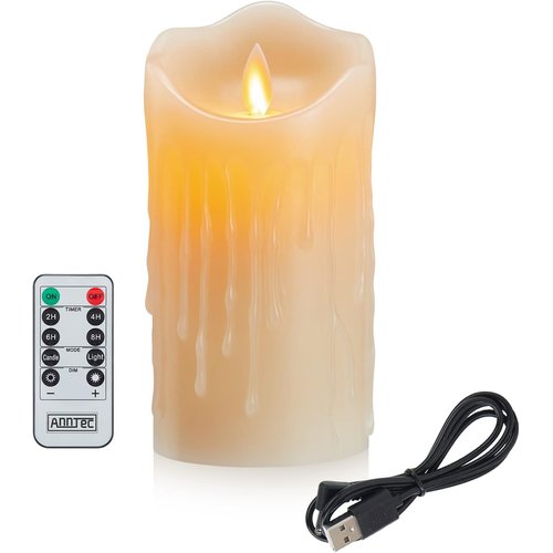 AnnTec LEDキャンドルライト USB充電式 リモコン搭載 ロウソク 本物の炎のようにゆらめく 暖色光 火を使わない ゆらゆら揺れる パーティー 結婚式 誕生日 室内 室外飾り 安全 省エネ 専用リモコン付き 明るさ調整 LED キャンドル 直径7.5cm×高さ10cm