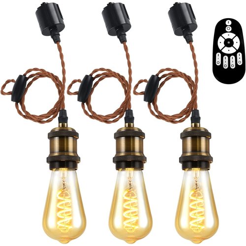 ANWIO ペンダントライト 3個セット 配線ダクトレール用 4.5W 20W形相当 E26口金 リモコン付き ダクトレールライト 北欧 シーリングライト レトロペンダントライト エジソン電球 LED電球付き 天井照明 角度調節可能 省エネ 居間 玄関 食卓 電池別売