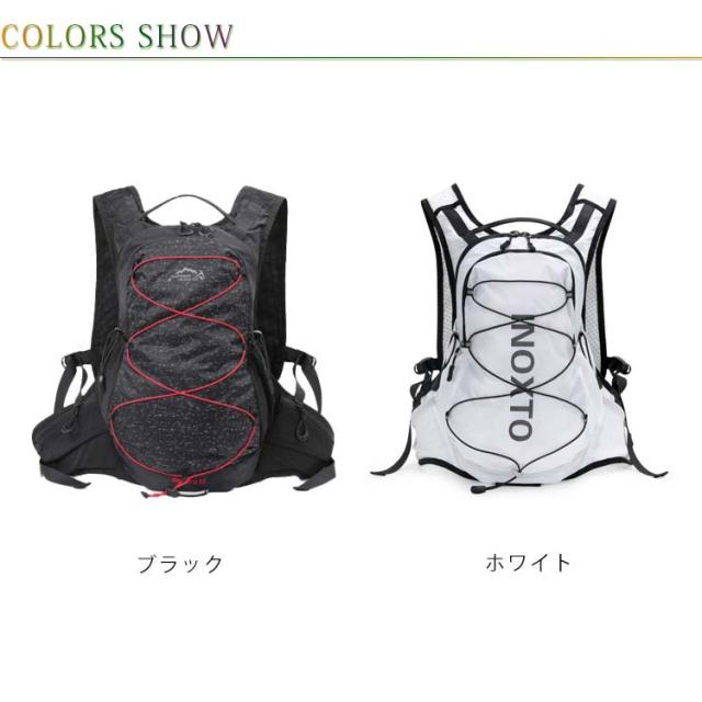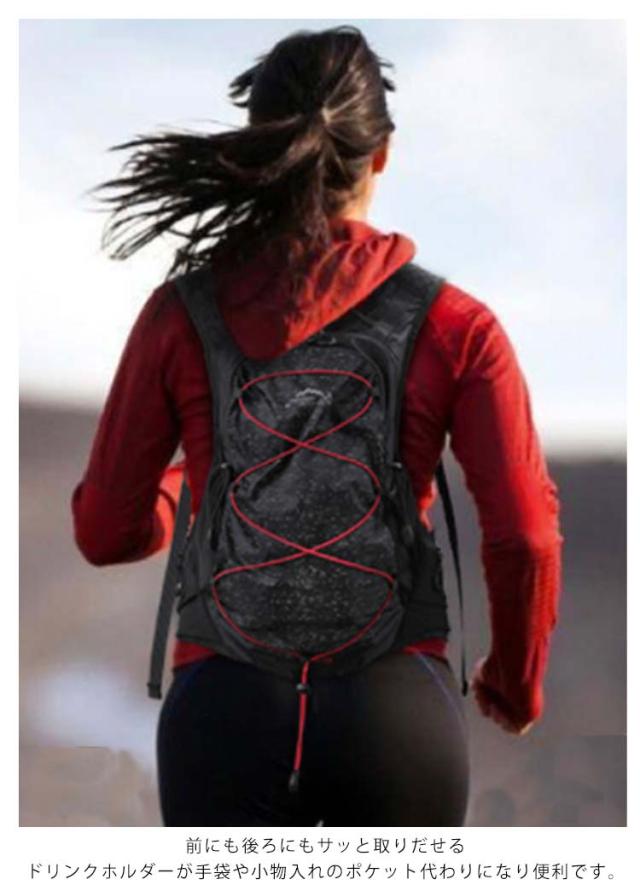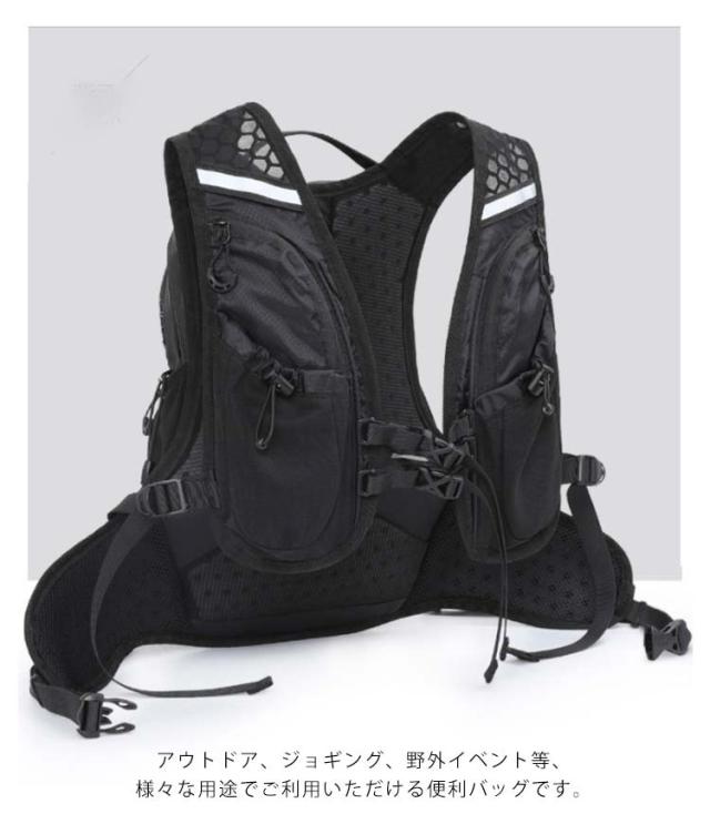ランニング リュック ザック デイパック ランニングバッグ フロントポケット ボトルホルダー 初心者 軽量 スポーツバッグ 防水 光反射 12L 大容量 ブラック ホワイト トレイル トライアスロン アウトドア 登山 リュックサック