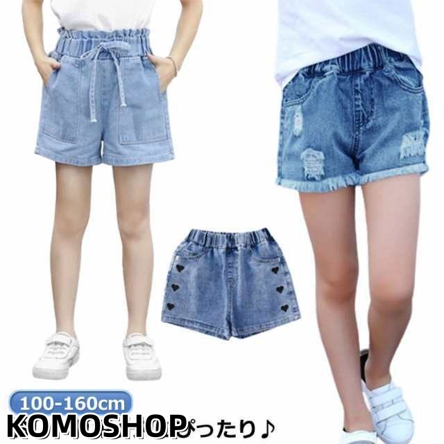 ジュニア デニムパンツ 女の子 ショートパンツ ダメージ加工 キッズ フリンジ 短パン 子供 キッズ ミニ 子供 子ども こども かわいい ベビー