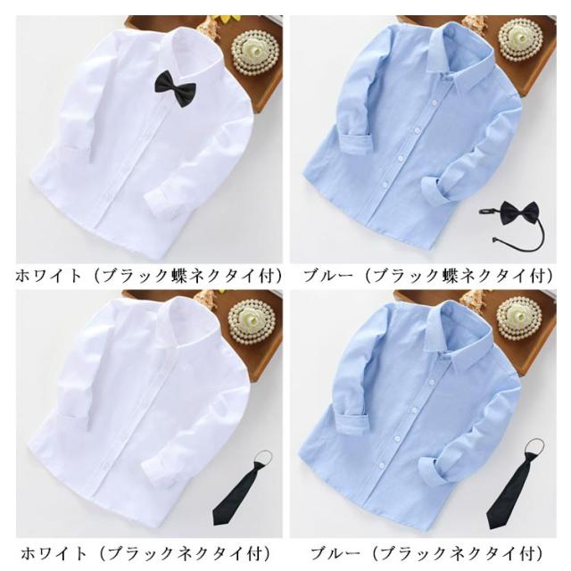 男の子 ネクタイ付き 卒園式 無地 子ども服 子供服 ジュニア キッズ服 制服 スクールシャツ 長袖 卒業式 入学式 入園式 蝶ネクタイ付き キッズ服 結婚式 発表会 七五三 フォーマル カジュアル お呼ばれ お出かけ