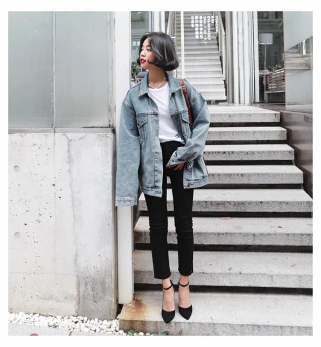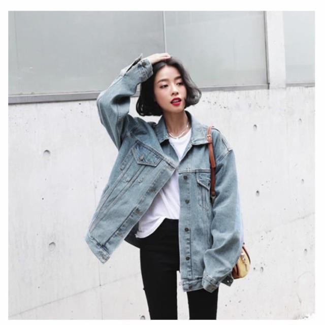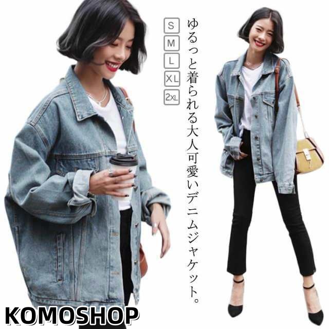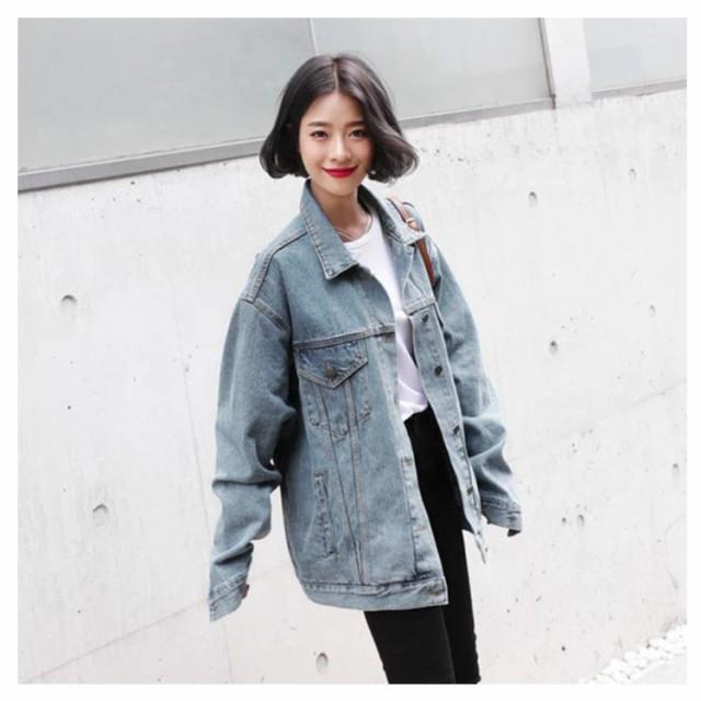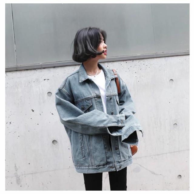 デニムジャケット オーバーサイズ メンズライク レトロ BF レディース 大きめ ブルゾン デニム 体型カバー Gジャン 大きいサイズ 原宿風 普段着 お出かけ ビッグシルエット デニムジャケット 春服