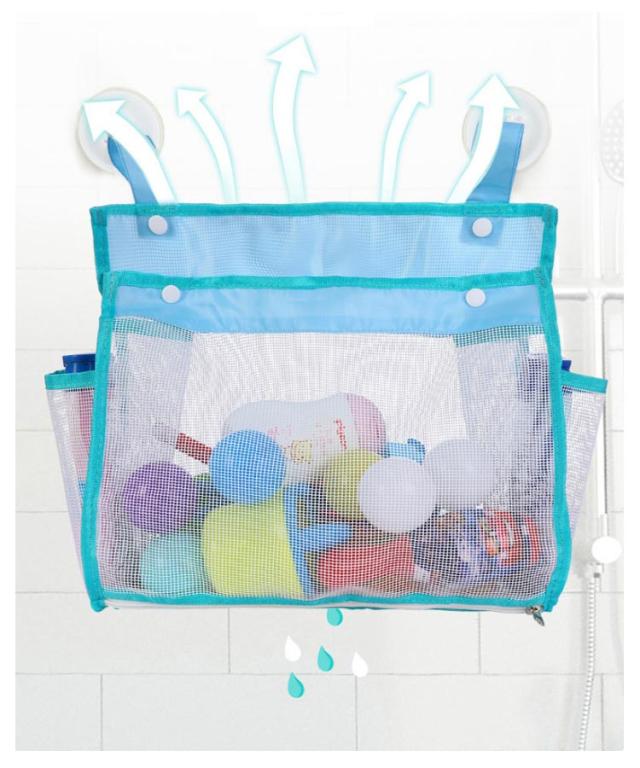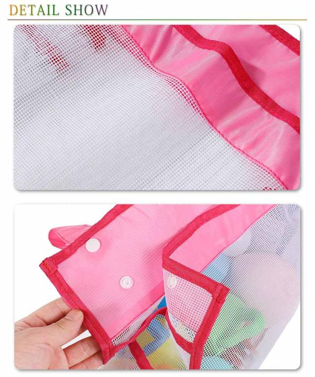 | 通気性の良いメッシュ素材のお風呂用おもちゃ収納ネットです。 ポイポイ入れるだけで片付けが完了♪スッキリ整理できて便利! お風呂だけでなく、水遊びやお砂場遊びの道具を入れてもいいですね☆ | |