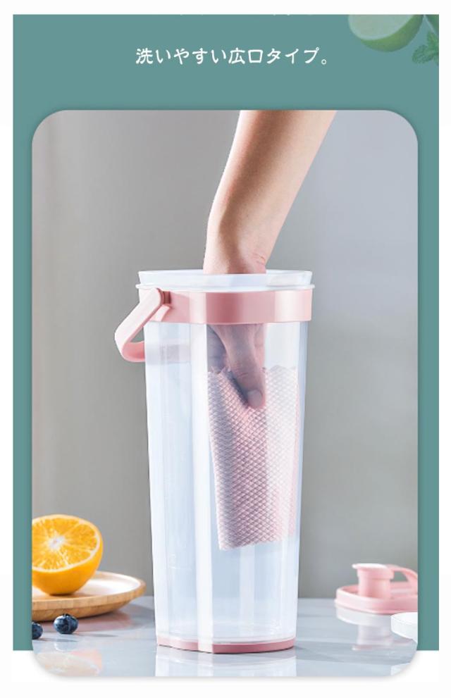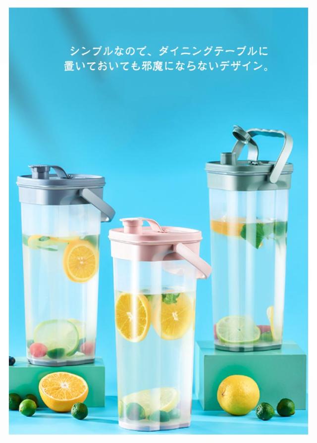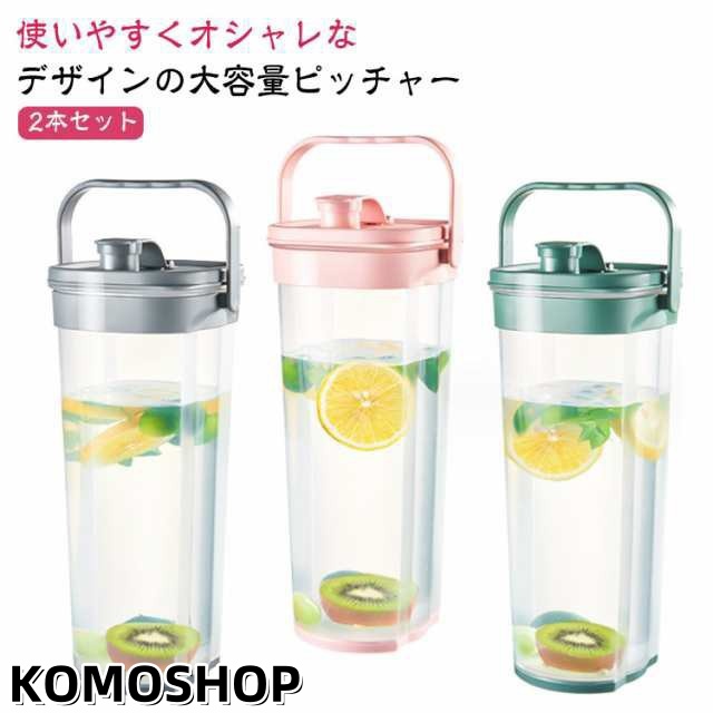 2本セット ピッチャー スリムジャグ プラスチック 麦茶ポット 麦茶ポット 冷水筒 目盛り 2L 耐熱 茶こし付き 持ち運び 大容量 ハンドル付き 洗いやすい 持ちやすい 冷蔵庫 スリム おしゃれ ウォーターボトル