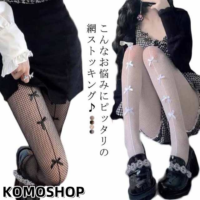 【送料無料】ストッキング 網ストッキング 可愛い リボン ローズ柄 柄ストッキング 網 網タイツ メッシュストッキング レース レースタイツ タイツ 白ストッキング 黒ストッキン