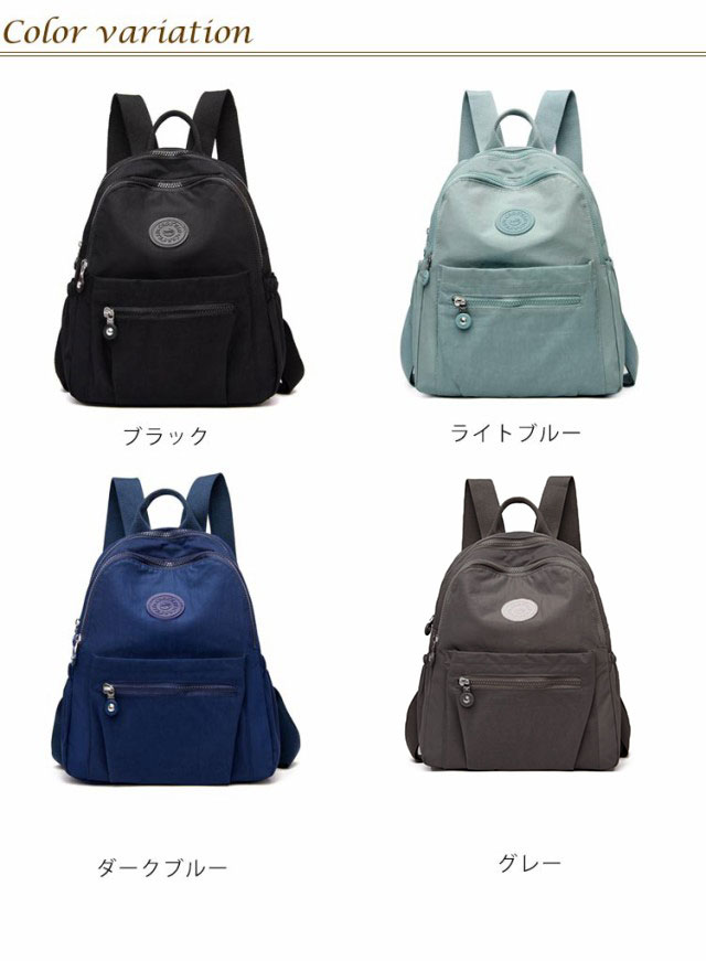 | 軽量・撥水 ・8個ポケット 全7色 収納力抜群の多機能リュック! <お勧めポイント> ●コンパクトなのに収納力はバツグン! あれこれ入れても中身が迷子にならない、ポケット多めの丈夫なリュックです。 ●軽量なのに大容量! 約510gの軽量リュック。お子様からご年配の方まで持ちやすい安心の軽さと容量です。 ●ポケット多めの多機能リュック ・ポケットは全部で8個! ポーチいらずで収納上手!カバンの中で小物が迷子になることもなくなります。 ・コンパクトな見た目からは想像できないほど荷物が入る! 背中側にはシークレットポケットもついているので貴重品の持ち運びも安心です。 ●大きく開くメインポケット ファスナーが大きく開くので中身の出し入れがとっても楽にできちゃいます。 ●旅行にもおすすめ! リュックとしてだけじゃなく、キャリーオンバッグにも。旅行のサブバッグにもぴったりです。 シンプル&多機能だから年代や男女問わず使いやすい ●入れるものいろいろ! シーンに寄り添うリュック お子様用品・ノートや書類・旅行グッズ・普段使いに | |