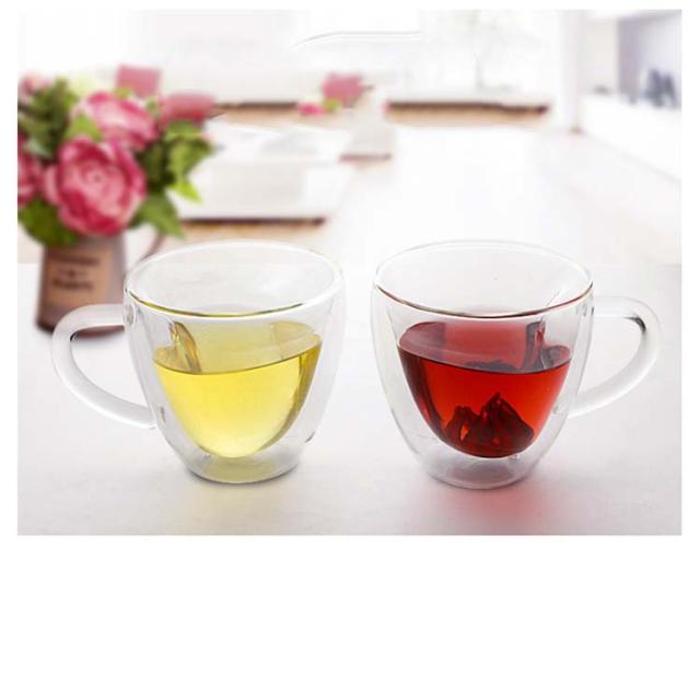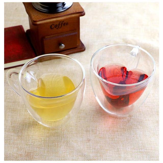 ダブルウォールグラス 取っ手付き コップ 耐熱ガラス 180ml 240ml 2個セット コーヒーカップ 透明 二重グラス マッグカップ 結露しない 保冷 保温 二重構造 北欧 食器 お祝い お茶 コーヒー お酒 誕生日 ギフト プレゼント パーティー
