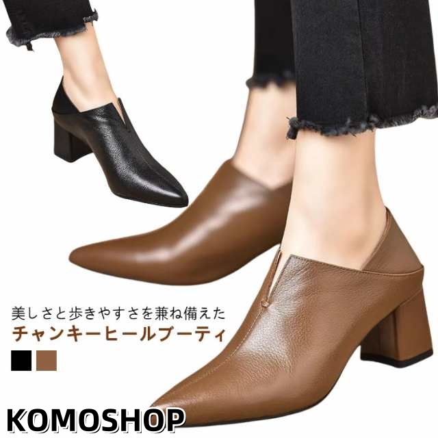 アンクルブーツ 痛くない 甲深 パンプス Vカット ブーティー チャンキーヒール 結婚式 走れる 仕事 太ヒール 美脚 ショートブーツ おしゃれ ブーティー ブラック ブラウン 22cm 22.5cm 23cm 23.5cm 24cm 24.5cm