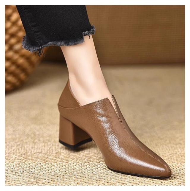 | 美しさと歩きやすさを兼ね備えたチャンキーヒールブーティ。 足首を華奢に魅せるVカット、くるぶしが当たらないから、長時間歩いても痛くなりにくい。 つま先は足をすっきり長く見せてくれるポインテッドトゥ。 足の露出が控えめの方や甲高の方もおしゃれにきれいに履いていただける甲深パンプス。 | |