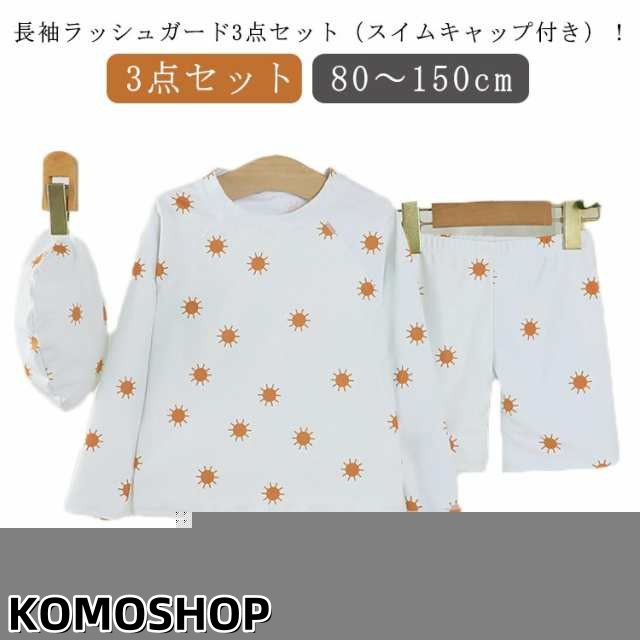 | 【3点セット】 【80 ? 150cm】 【長袖ラッシュガード3点セット(スイムキャップ付き)!】 可愛い子ども用長袖ラッシュガード3点セット(スイムキャップ付き)が登場! 長袖トップスとハーフパンツの水着上下セット★ 夏休みの旅行や海、プール教室、おうちプール、砂遊びなどで活躍します! | |