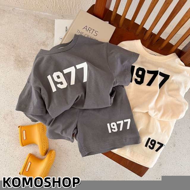 【即納】韓国子供服 ベビー服 コットン ロゴ ワンポイント 半袖 セットアップ 80 90 オフホワイト グレー 子供 赤ちゃん 女の子 男の子 おしゃれ かわいい 出産祝い プレゼント シンプル カジュアル くすみカラー 上下セット