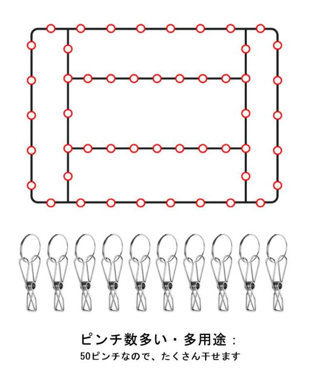 | サイズについての説明 | サイズ(cm):40×30、ピンチの数:50個 サイズ(cm):36×28、ピンチの数:60個 |