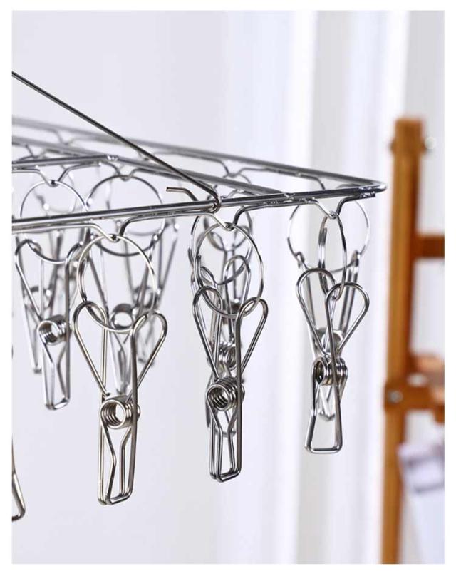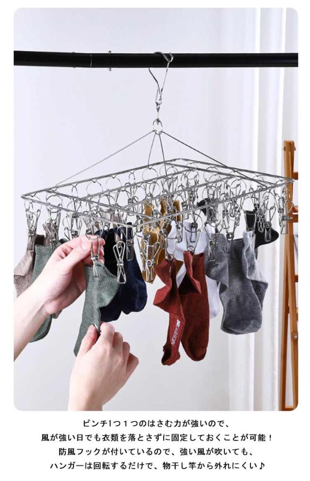 | オールステンレス製のピンチハンガーは、丈夫で錆に強く、劣化しにくく、長持ち♪ ピンチ数多い・多用途: 50ピンチなので、たくさん干せます ピンチ1つ1つのはさむ力が強いので、風が強い日でも衣類を落とさずに固定しておくことが可能! ハンカチやタオル、スカート、マフラー、帽子、靴下、ブラジャー、下着、赤ちゃんの服などの小物衣類に最適。 防風フックが付いているので、強い風が吹いても、ハンガーは回転するだけで、物干し竿から外れにくい♪ そして、360度回転で、通気性がよく、全方向から洗濯物を干せ、服を取り入れる時も便利な洗濯ハンガー♪ また、ピンチ同士の間隔を広くとって配列している ので、風通しがよく早く乾きますし、下着と靴下を分けて干すことができて、衛生面でも非常に効果的♪ | |