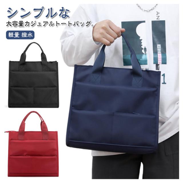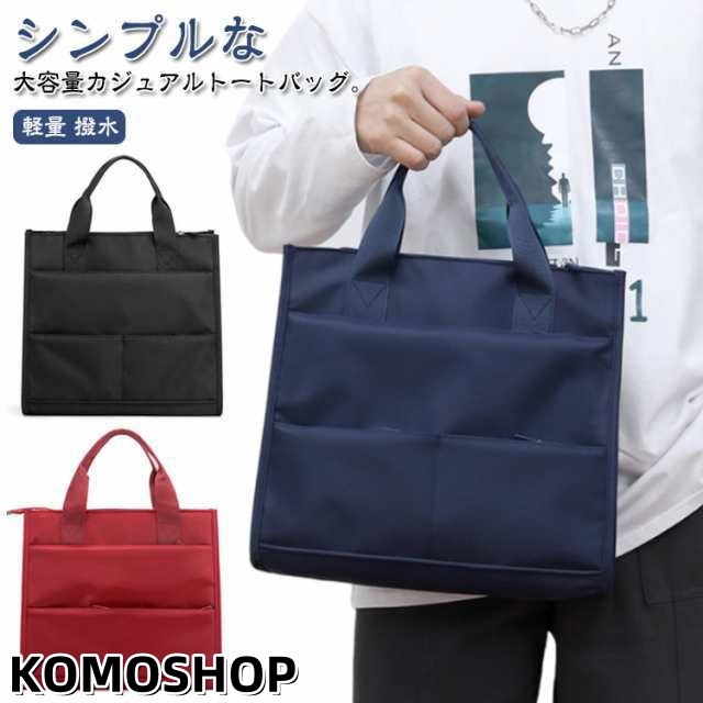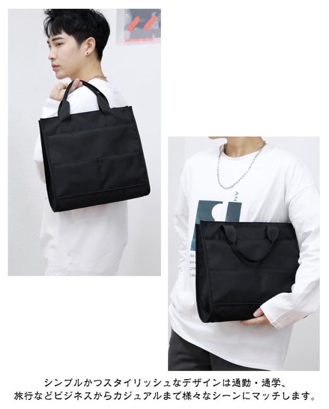 | シンプルな大容量カジュアルトートバッグ。 撥水加工付きなので少しの雨でも安心して使える! A4サイズ対応、ファスナー付きなど機能性抜群!メインの収納部には、A4サイズの書類やタブレットが余裕で収納できるオープンポケットが2つと、財布や資料などを収納するのに適したファスナーポケットが2つあります。フロントポケットが2つあるため、取り出しやすい収納をすることができます。 シンプルかつスタイリッシュなデザインは通勤・通学、旅行などビジネスからカジュアルまで様々なシーンにマッチします。 このビジネストートバッグには、充実したポケットが用意されています。 表面には高密度オックスフォードクロス生地を使用して、「撥水性」と「耐摩耗性」の両方を兼備したトートバッグです。 性別を問わずメンズもレディースも使用できます。 | |