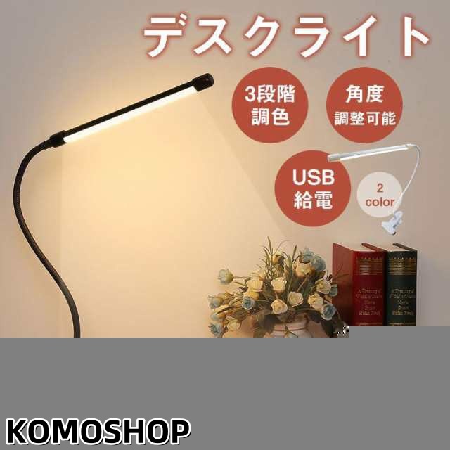送料無料 デスクライト おしゃれ LED クリップ クランプ 子供 明るい 卓上ライト 小型 オフィス 学習机 360度 回転 アーム 読書灯 ブックライト