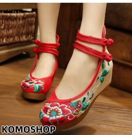 レディースシューズ チャイナ靴 手作り北京布靴 ローヒールエスニックチャイナシューズ痛くない カジュアル シューズ 太極拳 通気性 チャイナドレス メイド コスプレ 女の子 フォーマル 靴 花刺繍柄