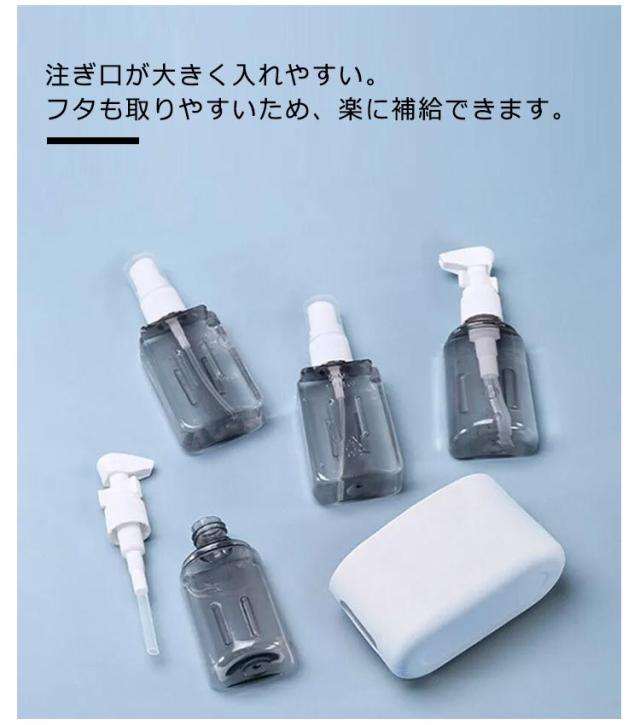 | サイズについての説明 | 10cm×4.5cm×1.2cm 50ml ポンプボトル×2本 スプレーボトル×2本 |