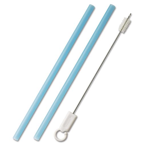 [OLUAGE] 日本製 繰り返し使える シリコン ストロー 食洗機対応 洗える ブラシ 付き エコ マイストロー 2本入 (クリアブルー)