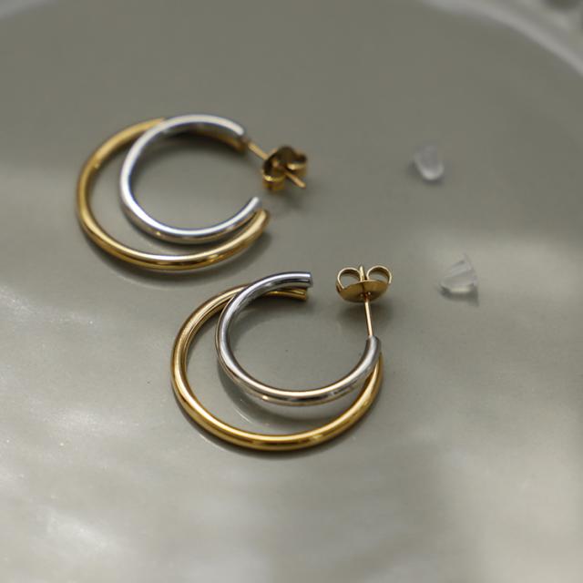 ピアス フープ かわいい フープピアス 小さめ レディース ゴールド シルバー ステンレス ダブルフープ アクセサリー キャッチ スタッド 2重 バイカラー カーブ 揺れる おしゃれ 【メール便】 nsa-30317z【aroco/アロコ】 母の日 プレゼント