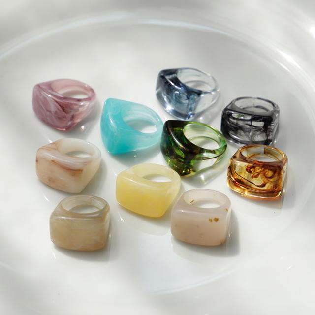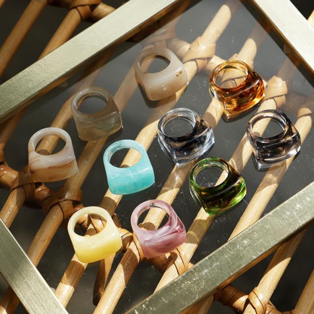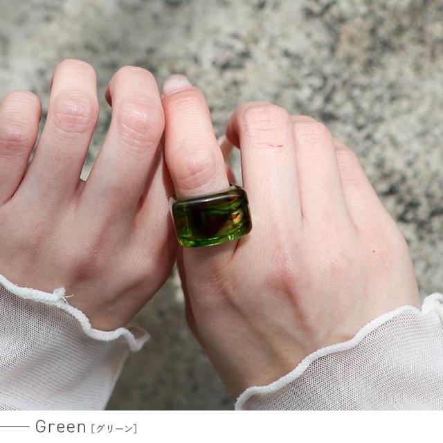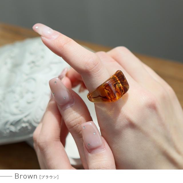 リング レディース ごつめ クリアリング 指輪 13号 アクリルリング 樹脂 レジン マーブル模様 透明 ニュアンスカラーリング スクエア型 四角い 大振り ボリューム 重ね付け フリーサイズ 【メール便】 nsa-r30322z 【aroco/アロコ】 母の日 プレゼント