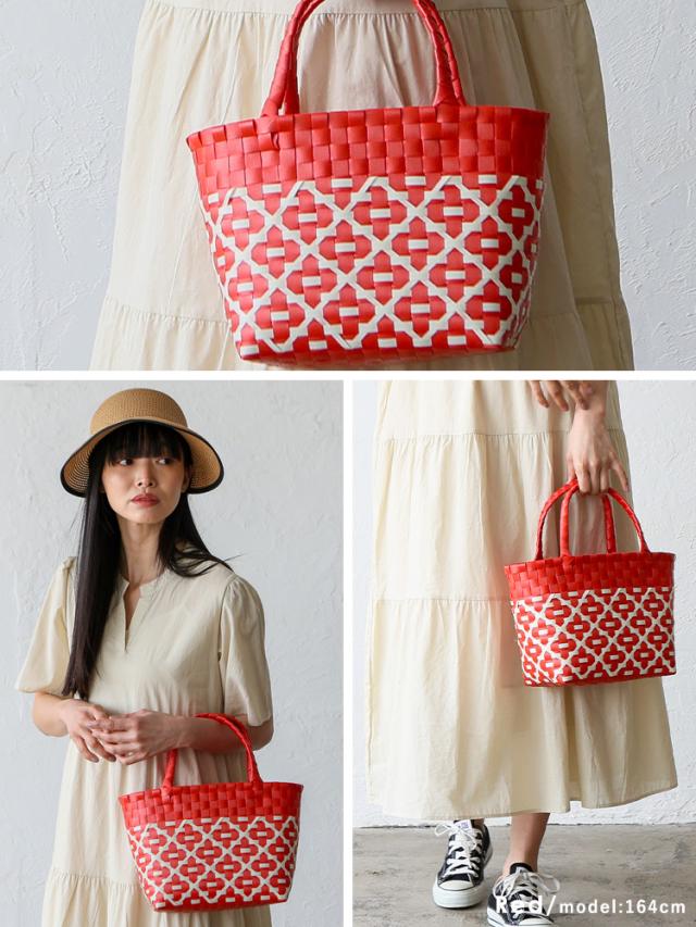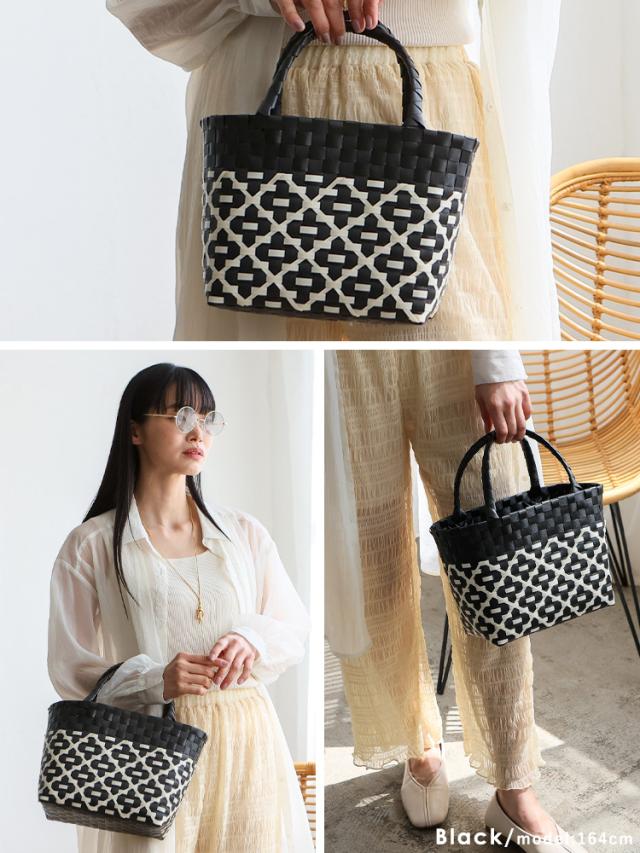 メルカドバッグ かごバッグ トートバッグ レディース 超軽量 カゴバッグ マルシェバッグ クロス a5 大容量 トートバック 自立 編み込み メキシコ風かごバッグ 柄 丈夫 手編み プラかごバッグ かごバック nsb-30303p 【aroco/アロコ】 春夏 春バッグ 母の日 プレゼント