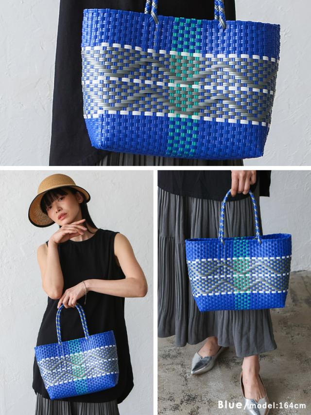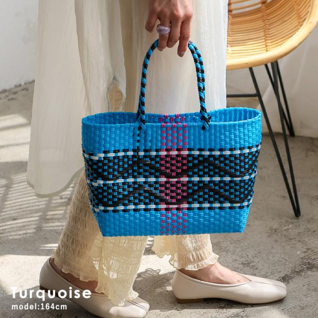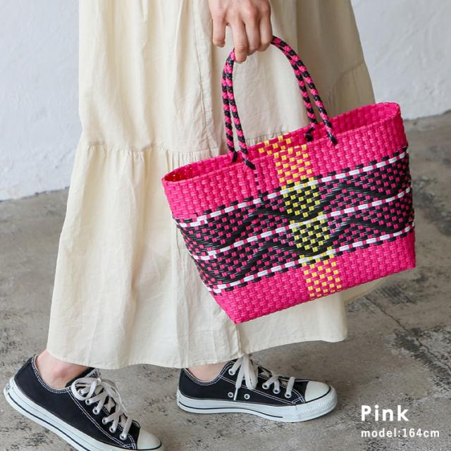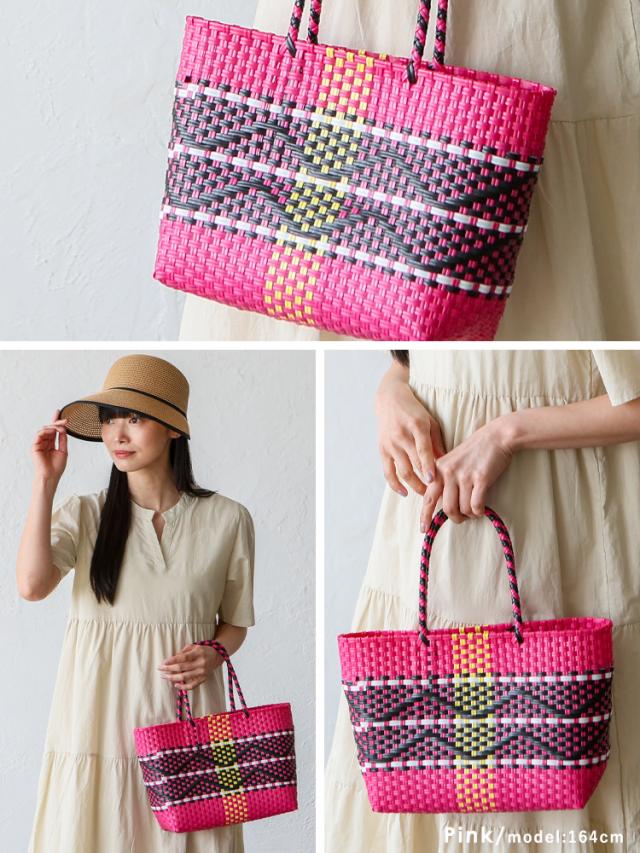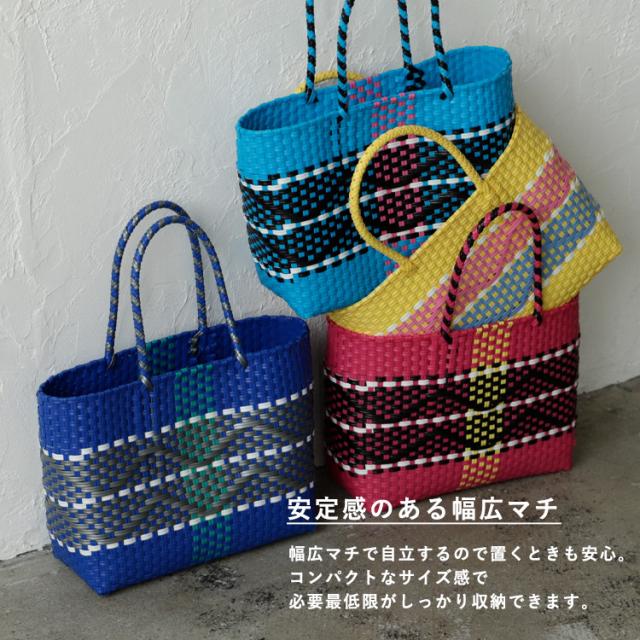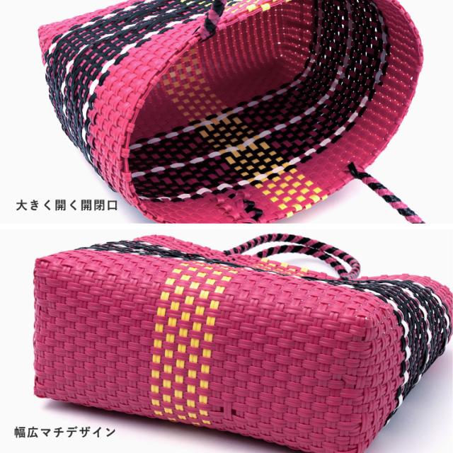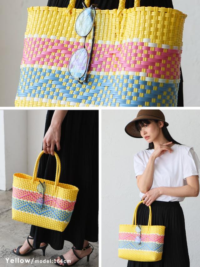 メルカドバッグ かごバッグ トートバッグ レディース 超軽量 カゴバッグ マルシェバッグ b5 大容量 トートバック 自立 編み込み メキシコ風かごバッグ 柄 丈夫 手編み プラかごバッグ かごバック nsb-30304p 【aroco/アロコ】 春夏 春バッグ 母の日 プレゼント