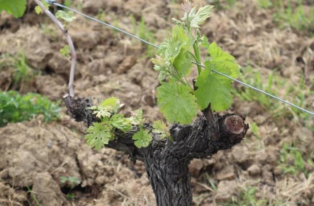 4月中旬の畑(▲写真)では、ぶどうの新芽から生命力に溢れた葉が出始め、畑の表土にも下草や花が萌えたち、清々しく吹き抜ける風と共に、春の訪れの喜びが感じられます。