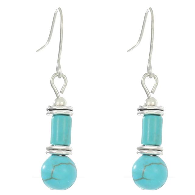 ターコイズフラスコーフックピアス/1ペア トルコ石 12月 誕生石 ボヘミアン メンズ レディース インディアンジュエリー 天然石 揺れる アンティークシルバー 銀色 真鍮 ファッションピアス 両耳 プレゼント ギフト 丸型 円柱型