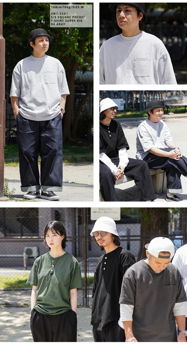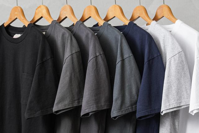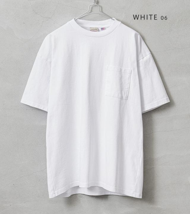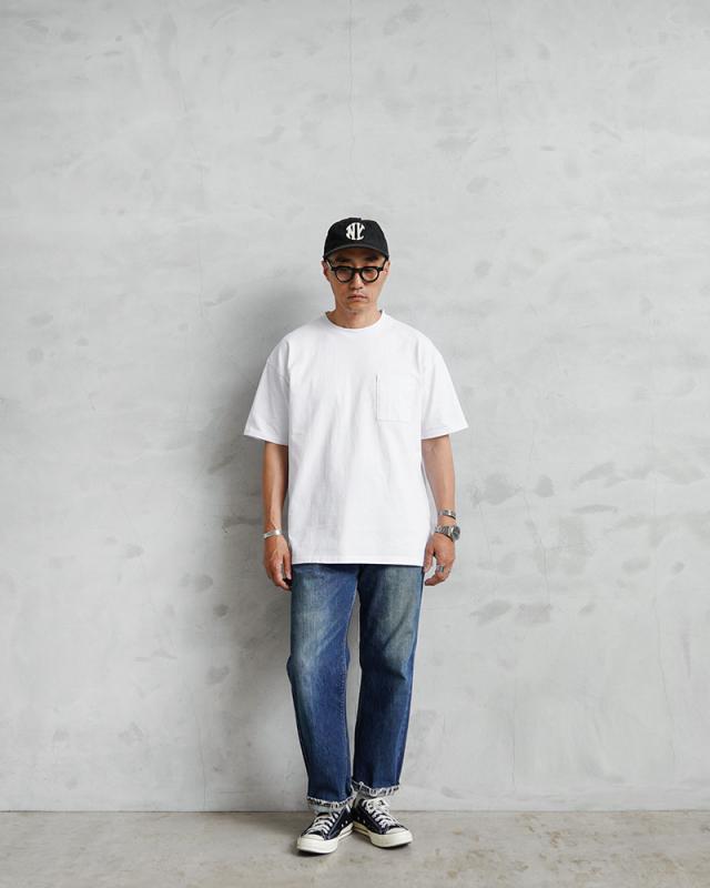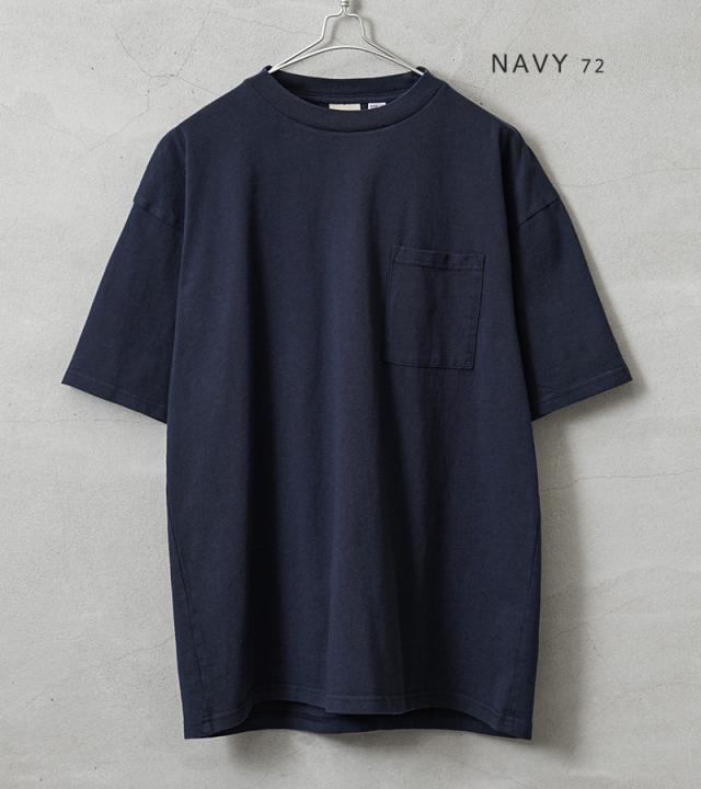 タフな生地感とシンプルなデザインで何度も着たくなるポケットTシャツのビッグサイズが登場。USAコットン特有のドライな生地感と、7オンスの肉厚で縫製強度の高いタフなボディに洗いをかけてUSED感を演出。着用回数を重ねるごとに身体に馴染んでいき、より一層増していくヴィンテージライクな風合いが楽しみな一枚。リラックス感のあるゆったりとしたシルエットで、襟はリブ仕様ですっきりとした印象。胸の四角ポケットが程よいアクセントになっています。