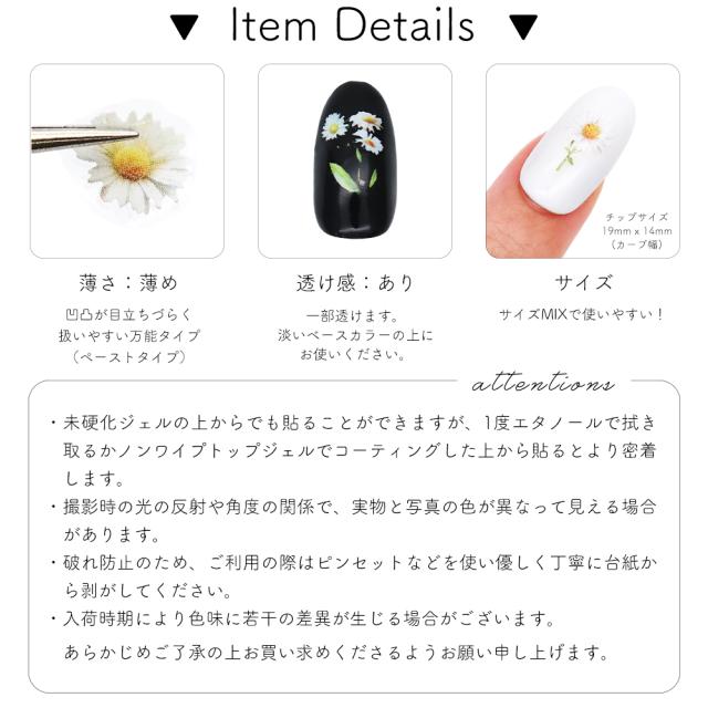 ノンワイプトップジェルでコーティングした上から貼るとより密着します。