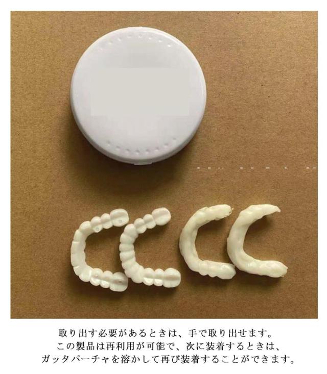 | 入れ歯・上下セット。手軽に白い歯を実現、理想の笑顔をサポートする上下義歯セット 良質のシリコーン材料なので無害です。 サイズ調節が可能で、使いやすく、完璧な笑顔を作り出します。 収納がシンプルで、掃除がしやすく、再利用しやすい。 取り出す必要があるときは、手で取り出せます。 この製品は再利用が可能で、次に装着するときは、ガッタパーチャを溶かして再び装着することができます。 簡単な3ステップで、カップに熱湯を用意し、杜仲ガムを1分間、色が白から透明に変わるまで溶かします。スプーンで慎重にガムをお湯から取り出し、15秒待ってから取り出します。 30秒後、ガムの出来上がりです。 さあ、あなたの素敵な笑顔を見せてください。 | |