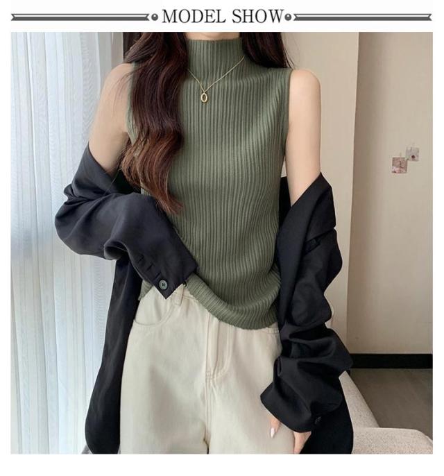 プリーツ タンクトップ 2枚セット レディース ハイネック ノースリーブ Tシャツ ニットトップス ストレッチ トップス ハイネックニット レイヤード シンプル 春 夏 全10色 サマーニット S M L XL 送料無料