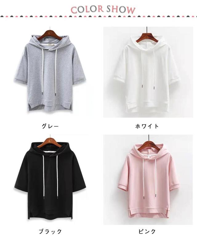 パーカー フード付きtシャツ 半袖 前後差 無地 トップス 春 夏 シンプル パーカー レディース Tシャツ 春夏 カットソー プルオーバー パーカー ゆったり 無地 部屋着 カジュアル おしゃれ 薄手 送料無料