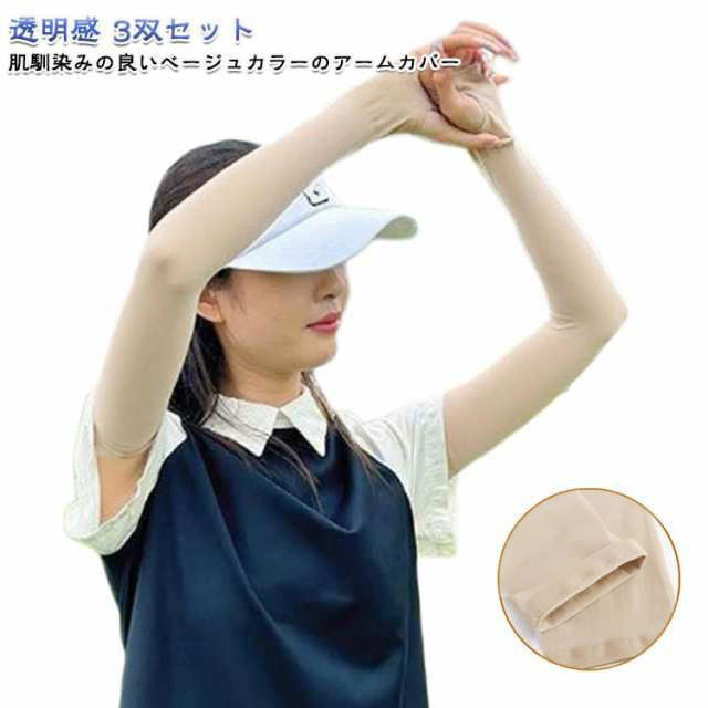 アームカバー UVカット 3ペアセット 肌色 涼感 涼しい 指穴 日焼け対策 防止 ロング 指なし 毛穴 シミ あざ隠し 透明感 ゴルフウェア 紫外線カット スポーツ 小物