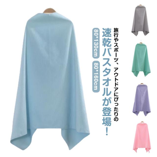 バスタオル スポーツ用 大判 肩掛けボタン付き 吸水 速乾 スポーツタオル スイミングタオル 運動タオル UVカット 暑さ対策 軽量 薄手 大きいサイズ 出張 旅行 温泉 海辺 水泳 ジム ヨガ 子供 男女兼用