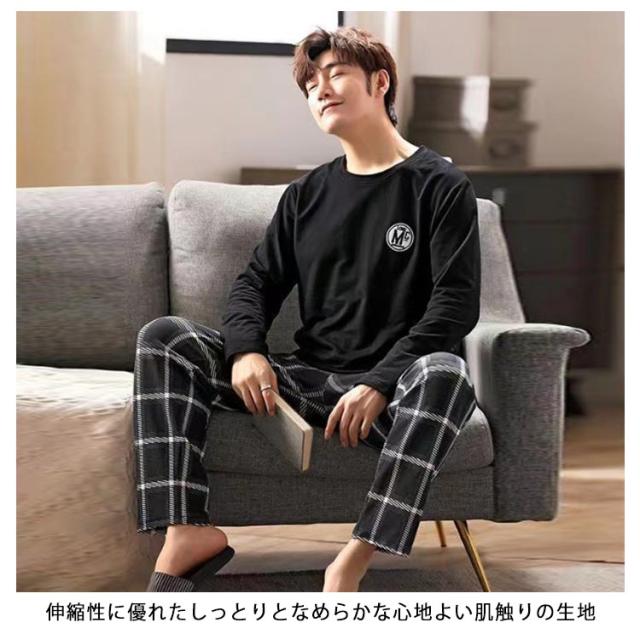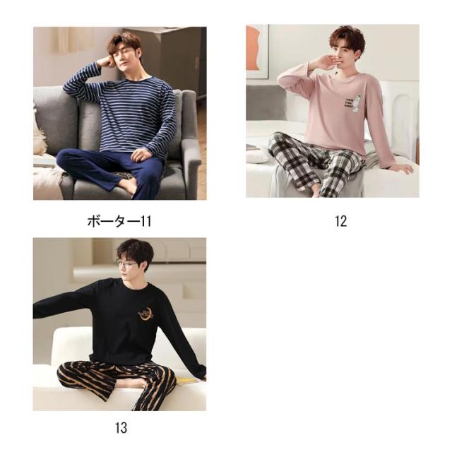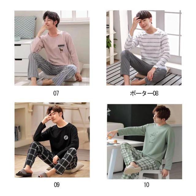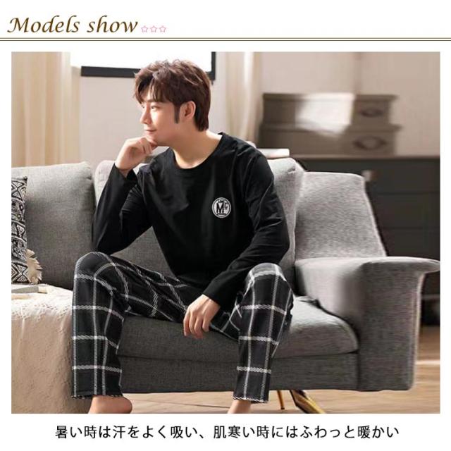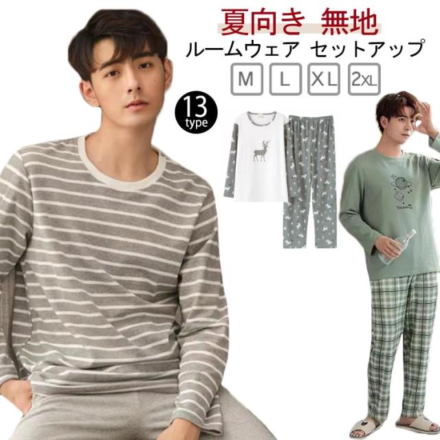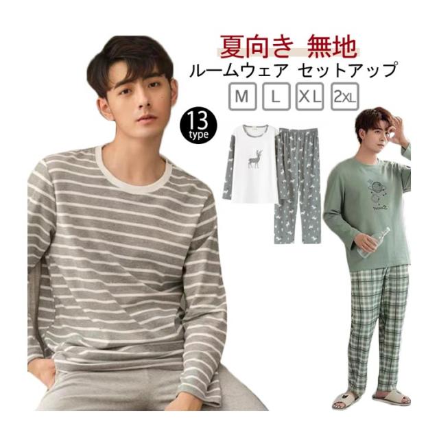 パジャマ メンズ 寝巻き 長袖 Tシャツ セットアップ ルームウェア 上下セット 夏向き 無地 ストライプ ボーター 父の日 プレゼント 紳士 男性 春 男の子 旦那 チェック 総柄 おそろい 男性 ナイトウェア ギフト プレゼント 敬老の日 誕生日 オールシーズン 部屋着