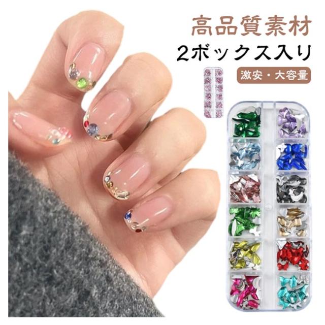 2ボックス入り ネイルを飾てネイルデコレーション ネイルラインストーン ネイルアート ネイルパーツ ネイル ストーン 3D 丸 ネイルアートパーツ ハンドメイド素材 手芸パーツ DIY 3D 混入ネイルアートパーツ クリスタル ラインストーン セルフネイル