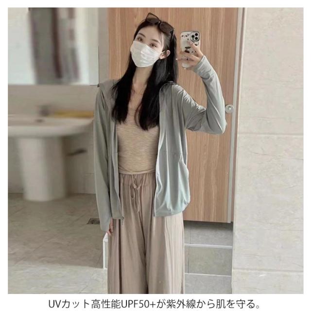 UVパーカー レディース 夏 涼しい アウトドア フード付き 紫外線カット ラッシュガード uvカット アイスシルク ライトアウアー 無地 ジップアップ 薄手 体型カバー 通気性 長袖 おしゃれ 日焼け防止 冷房対策 ラッシュパーカー スポーツ