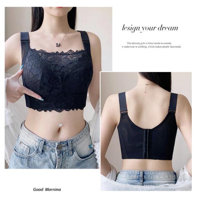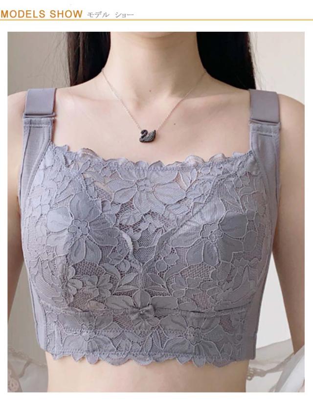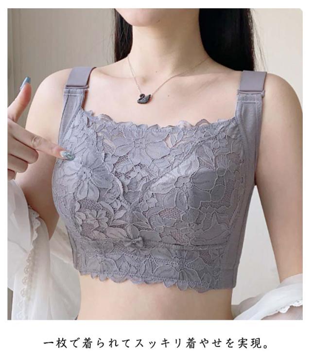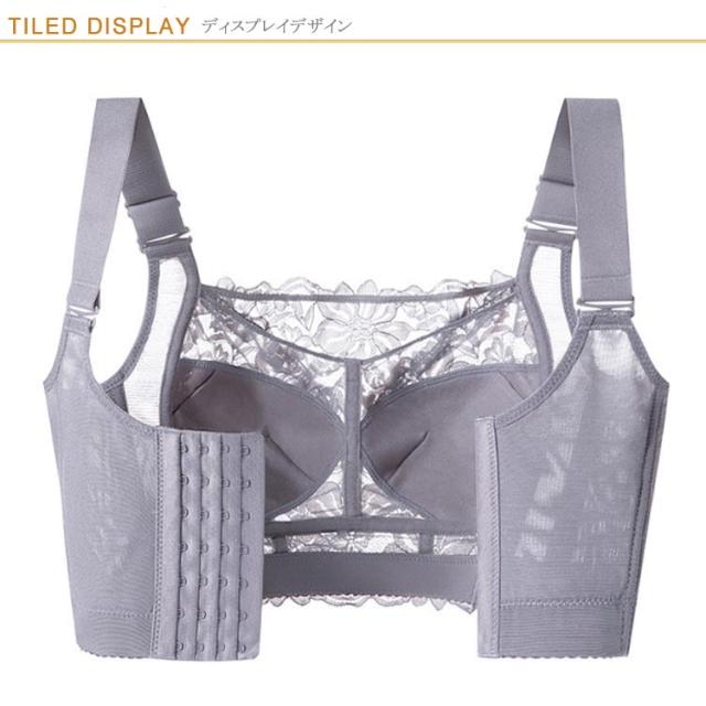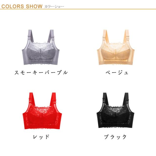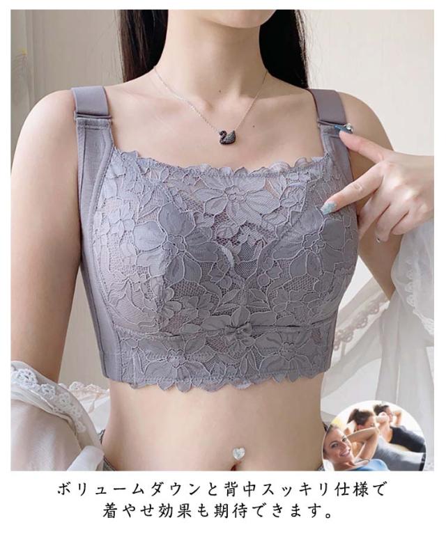 胸を小さく見せるブラ ノンワイヤー 補正 下着 ブラ ブラジャー 着やせブラ 大きいサイズ 薄型パッド レース フルカップ 脇高 姿勢 補正 猫背