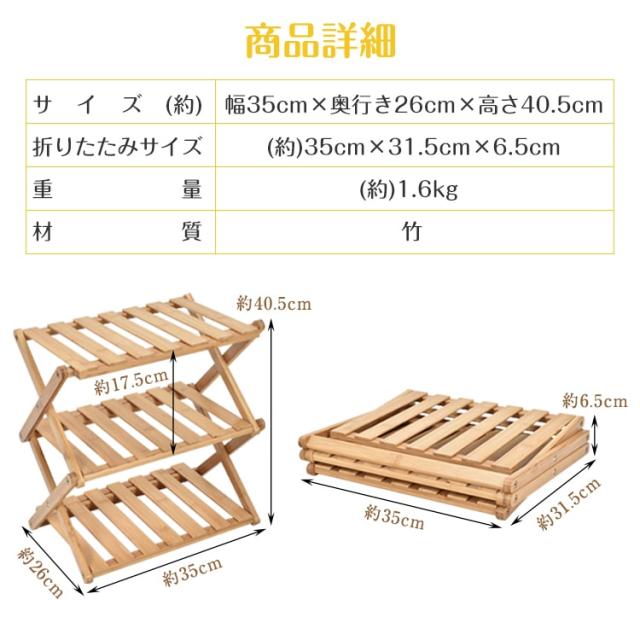 キャンプラック ウッドラック 収納棚 ラック 3段 折りたたみ式 竹製 収納袋付き 車載 収納可能 屋外 屋内 アウトドア おしゃれ od603