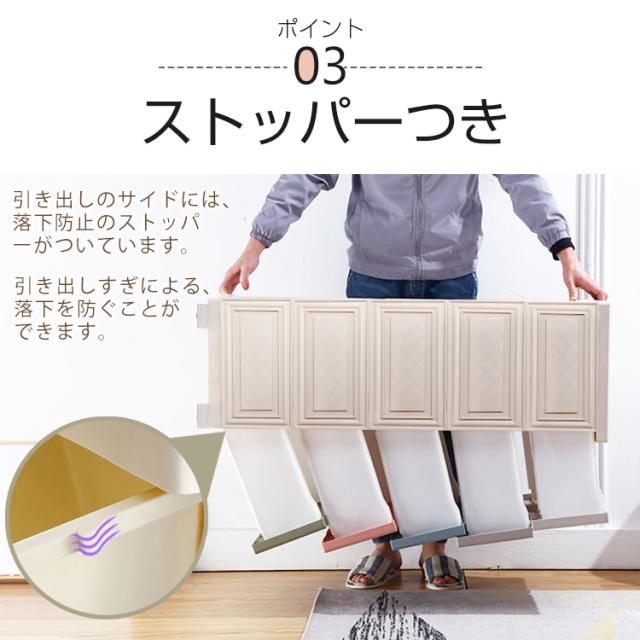 ■落下防止のストッパーつき!引き出しすぎによる、落下を防ぎます。